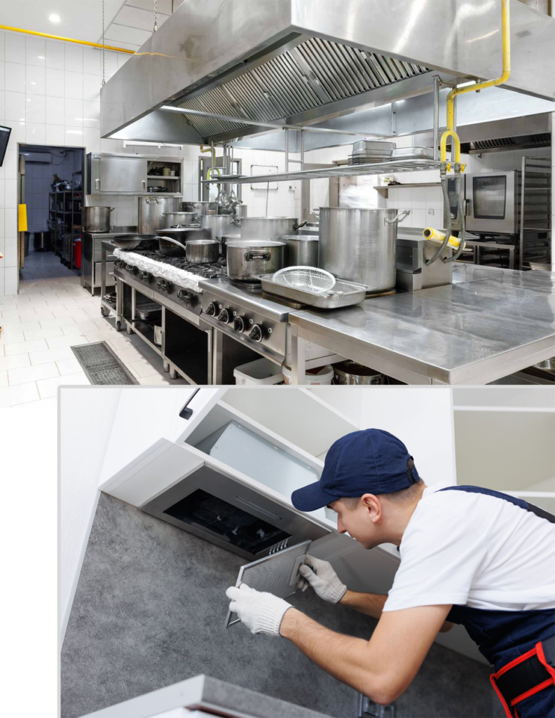 Our expert team specializes in kitchen hood cleaning, removing grease buildup to enhance ventilation and fire safety. We also offer kitchen hood installation and repair, ensuring your exhaust system functions efficiently. Additionally, we provide deep cleaning for kitchen appliances, including ovens, fryers, grills, and refrigerators, to keep them in optimal working condition.